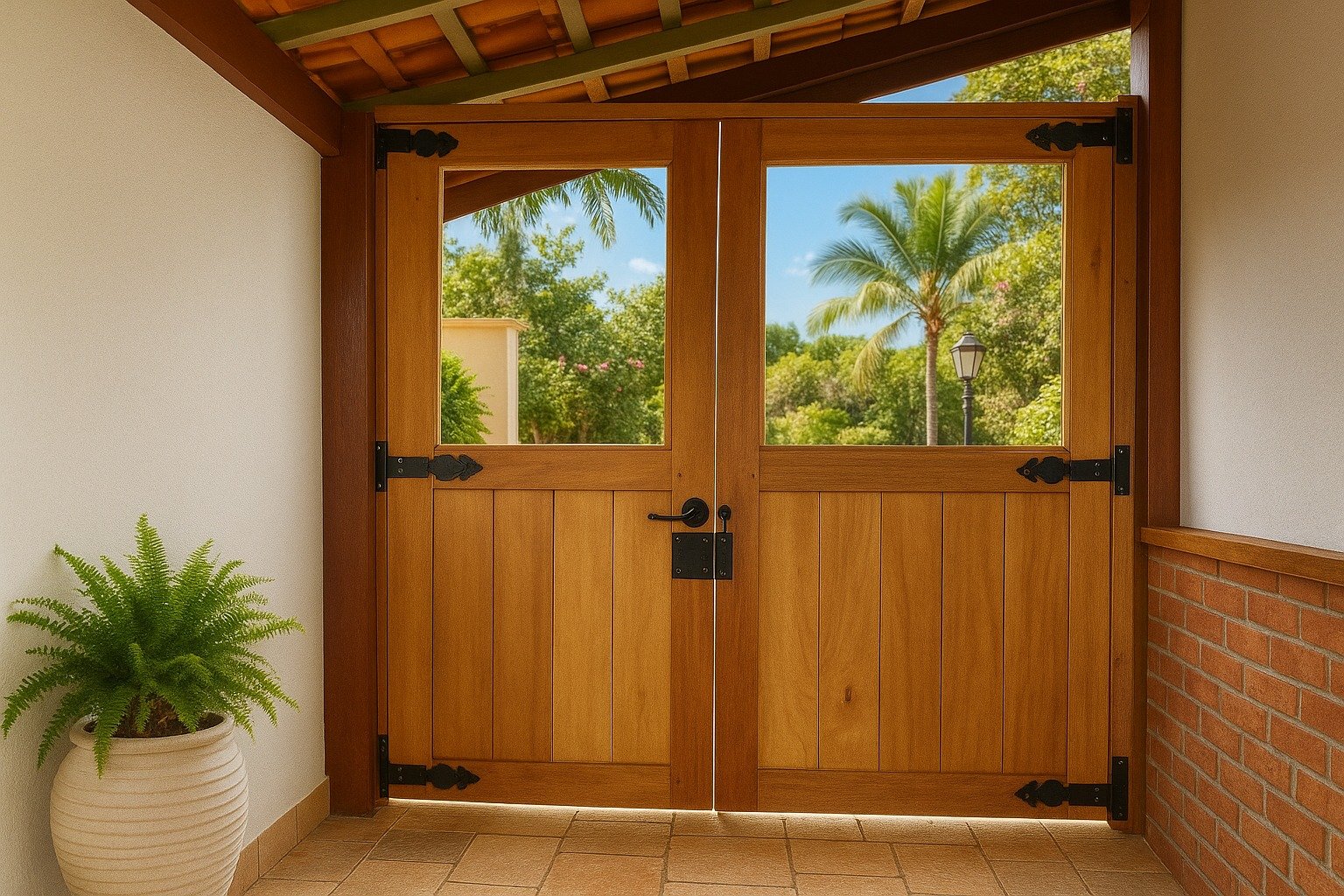 A porta balcão de madeira da Madeireira 41, é fabricada na madeira Canelão e Cedro Arana, pois, oferece durabilidade, elegância e excelente ventilação. Além de valorizar o ambiente, proporciona isolamento natural, maior luminosidade, fácil integração entre áreas internas e externas e acabamento premium. Uma escolha ideal para quem busca estilo, funcionalidade e benefícios reais no dia a dia.